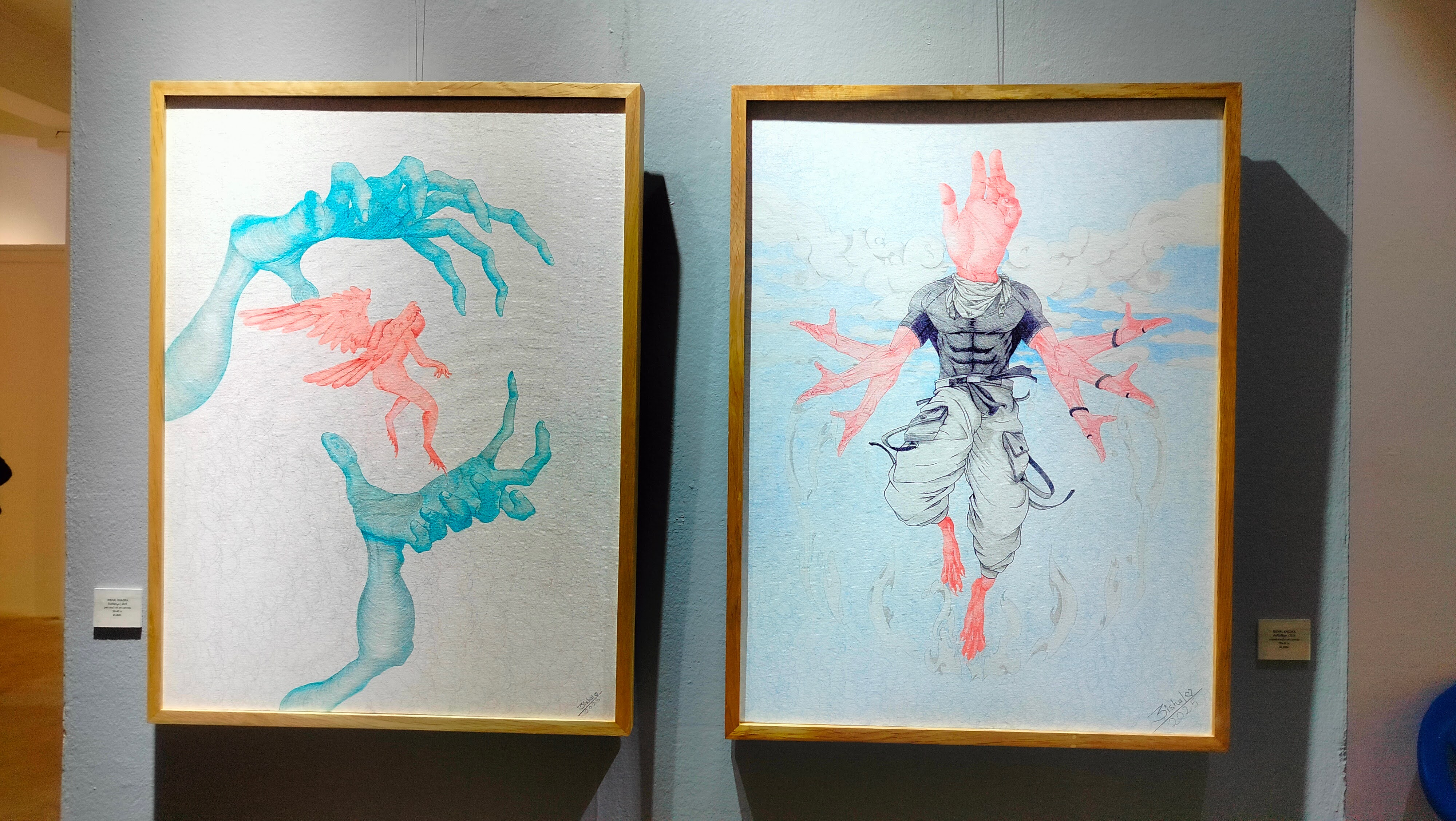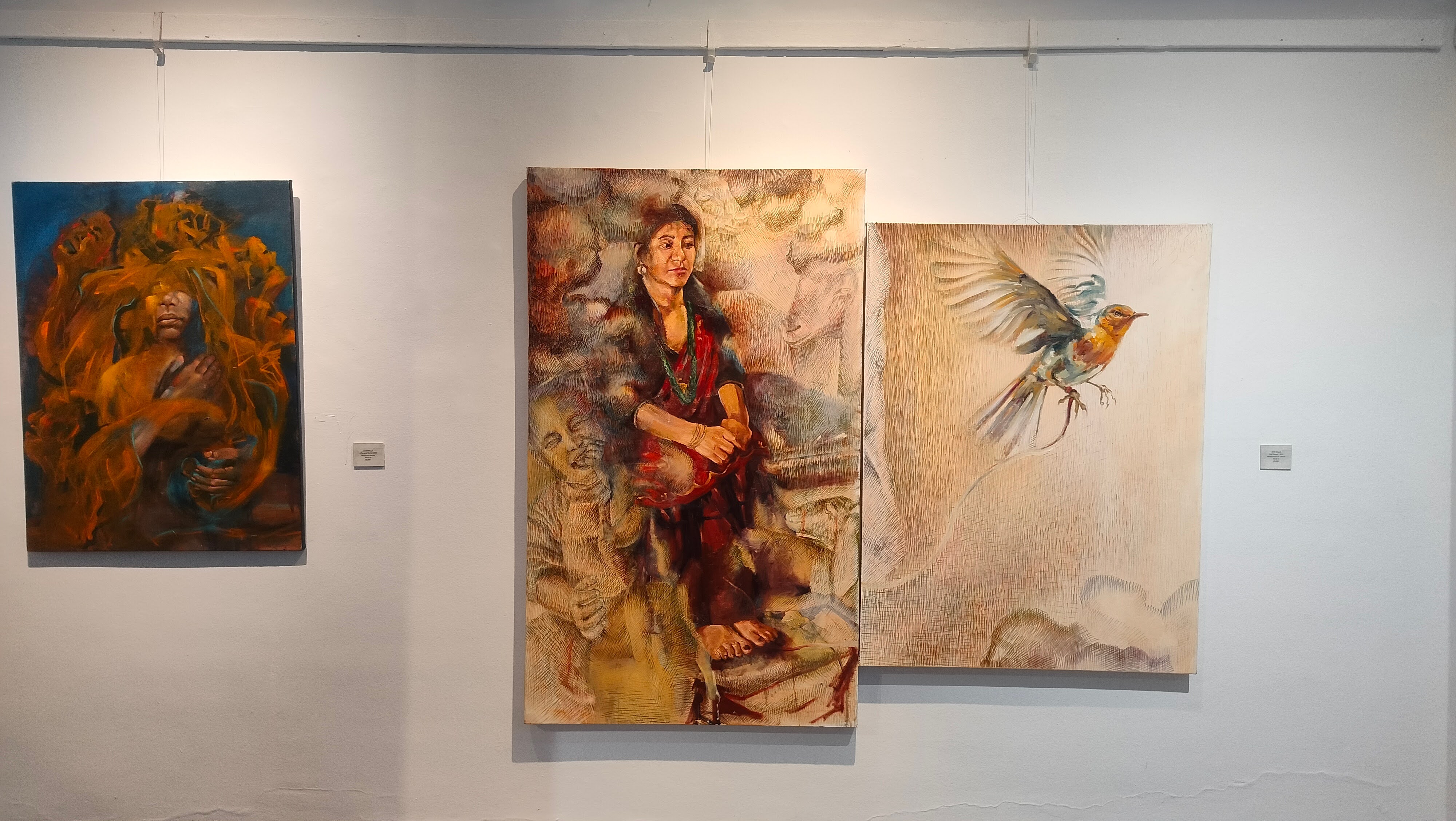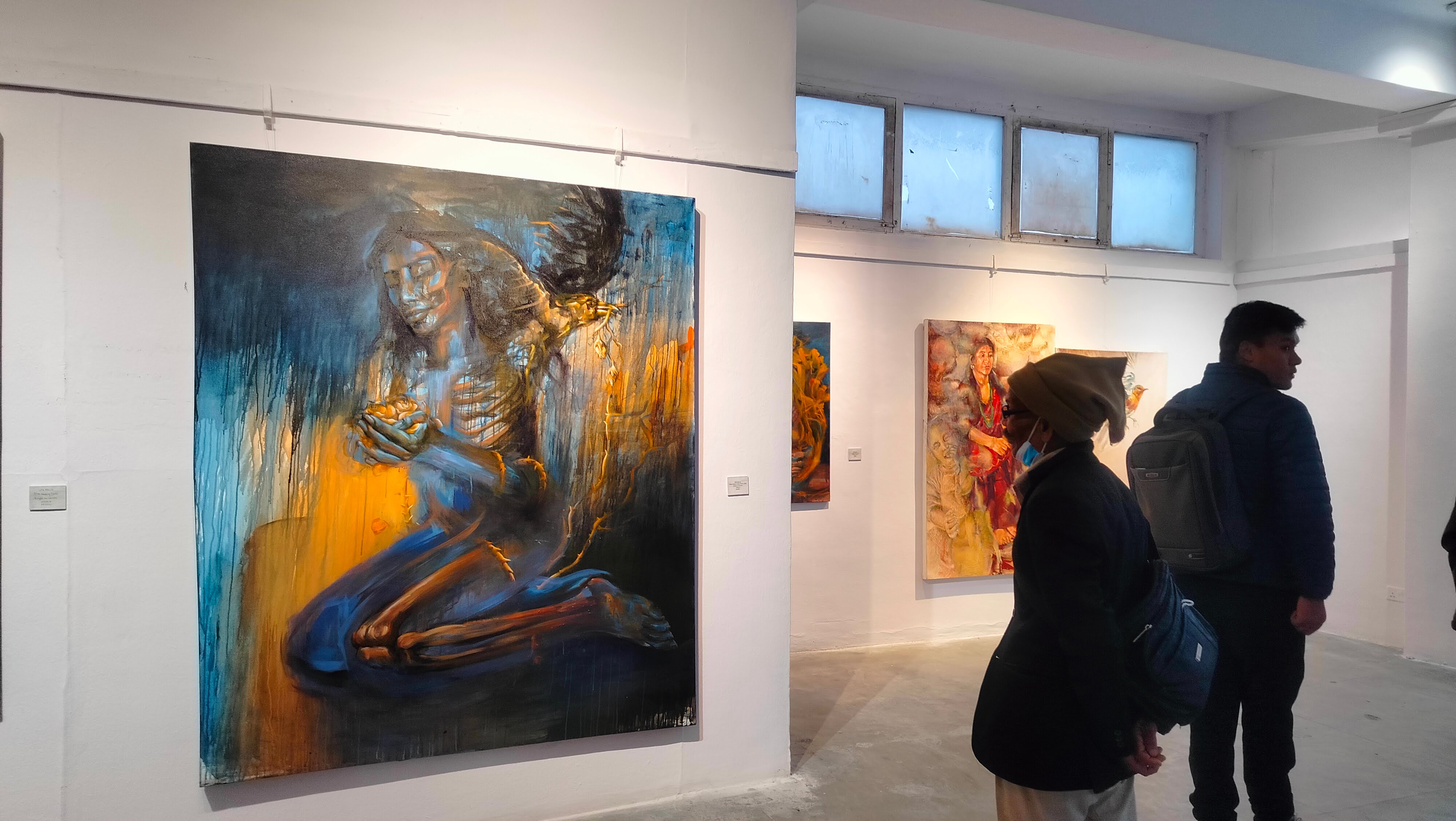 The exhibition is divided into two sections and the artworks of 22 students— Aavash Prajapati, Aayush Byanjankar, Ashreena Tuladhar, Bishal Khadka, Karma Tashi Gurung, Manasi Bhatt, Nehan Raj Rasaili, Nipun Sherpa, Niraj Gurung, Pranil Maharjan, Saijal Sthapit, Sita Malla, Spandan Pyakurel, Kritika Shrestha, Mahima Maharjan, Najina Lama, Prashansa Gurung, Purnima Thapa, Samar Shakya, Sita Timilsina, Sujita Maharajan and Ujan Shakya— are on display.
