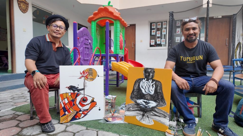 Interactive sessions were conducted by artists Mukesh Shrestha and Sundar Lama, focusing on different artistic techniques and hands-on practice.
