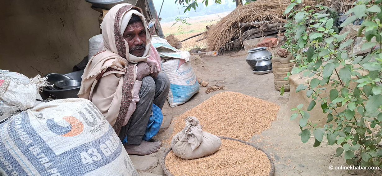 Due to extreme cold, 62-year-old Bouelal Sada of Baghchaud-2 of Hanspur Municipality, Dhanusha, is unable to sleep throughout the night. Sleeping on straw with only a thin sheet, Sada finds it difficult to protect himself from the cold. As he can not sleep due to the cold, he lights a fire pit at night to keep warm.