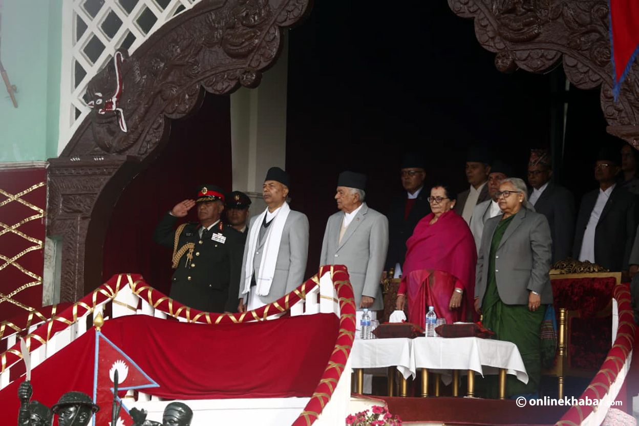The special ceremony held Thursday morning at the Military Stage in Tundikhel was attended by President Ramchandra Paudel along with other high-ranking government officials. President Paudel participated in the ceremony with First Lady Sabita Paudel. The army paid a salute in his honour during the event.