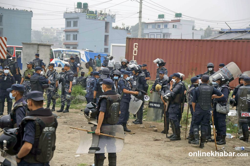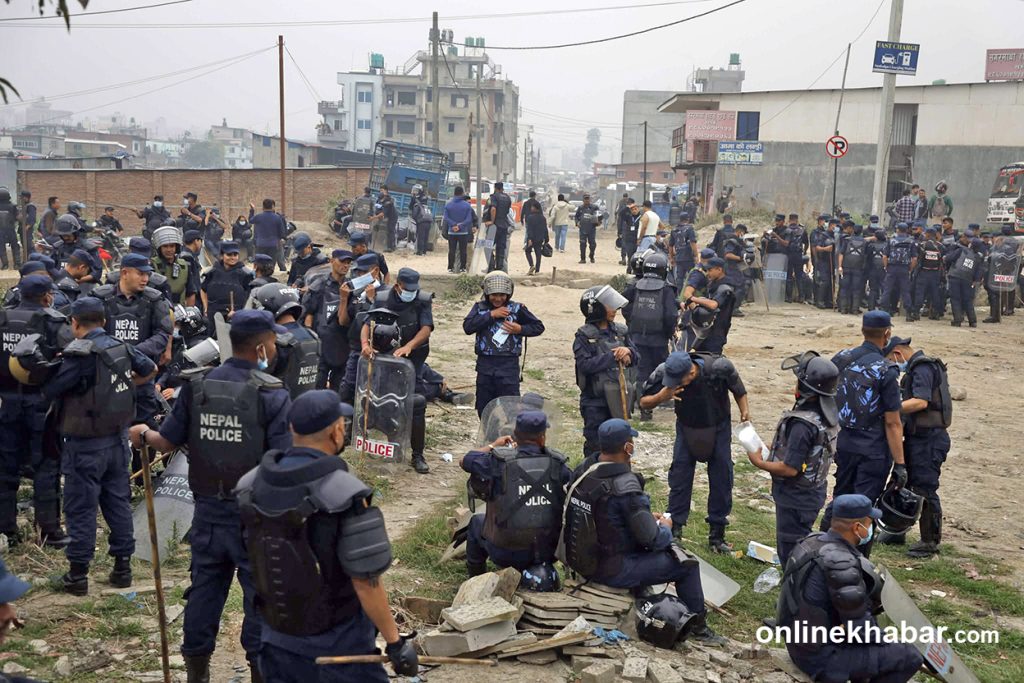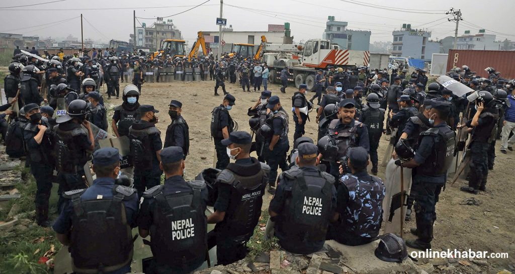 Security forces and bulldozers have arrived at a squatter settlement in Manohara, Bhaktapur, to carry out demolitions.