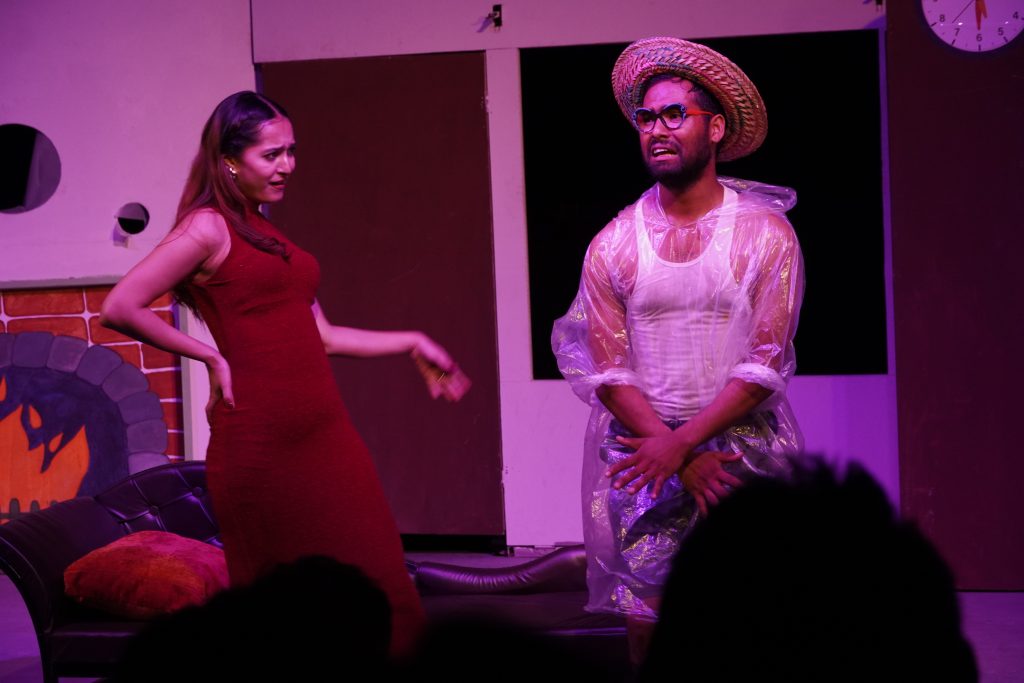 Another compelling element of the production is its setting, a guest room in an apartment, complete with revolving doors, deliberately unruly props, and a balcony that tilts, each adding to the comic texture of the play. Kudos to stage designer Suresh Karki and his team at Tool Engineering.