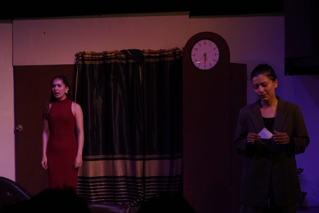 Shreeshesh Shrestha’s performance as the lighting technician portrays just how disastrous and comic a play can look when the lights fail to deliver, underscoring the often-overlooked importance of the role. The same applies to the sound technician, played by Bal Bahadur Rai.
