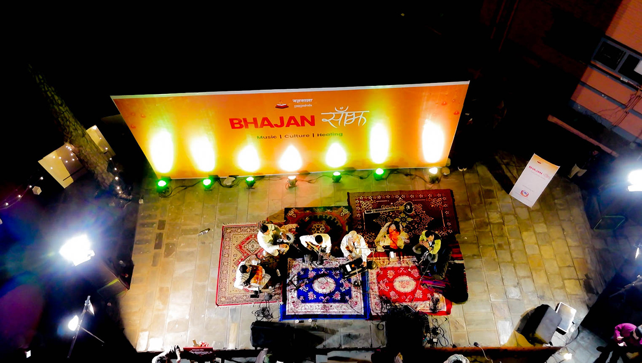 A similar scene was witnessed on November 29 during the ninth episode of Bhajan Sanjh organised by Yagyashala. To savour the village-like essence of bhajans and kirtans, people gathered at the Dabali of Nepal Academy in Kamaladi.