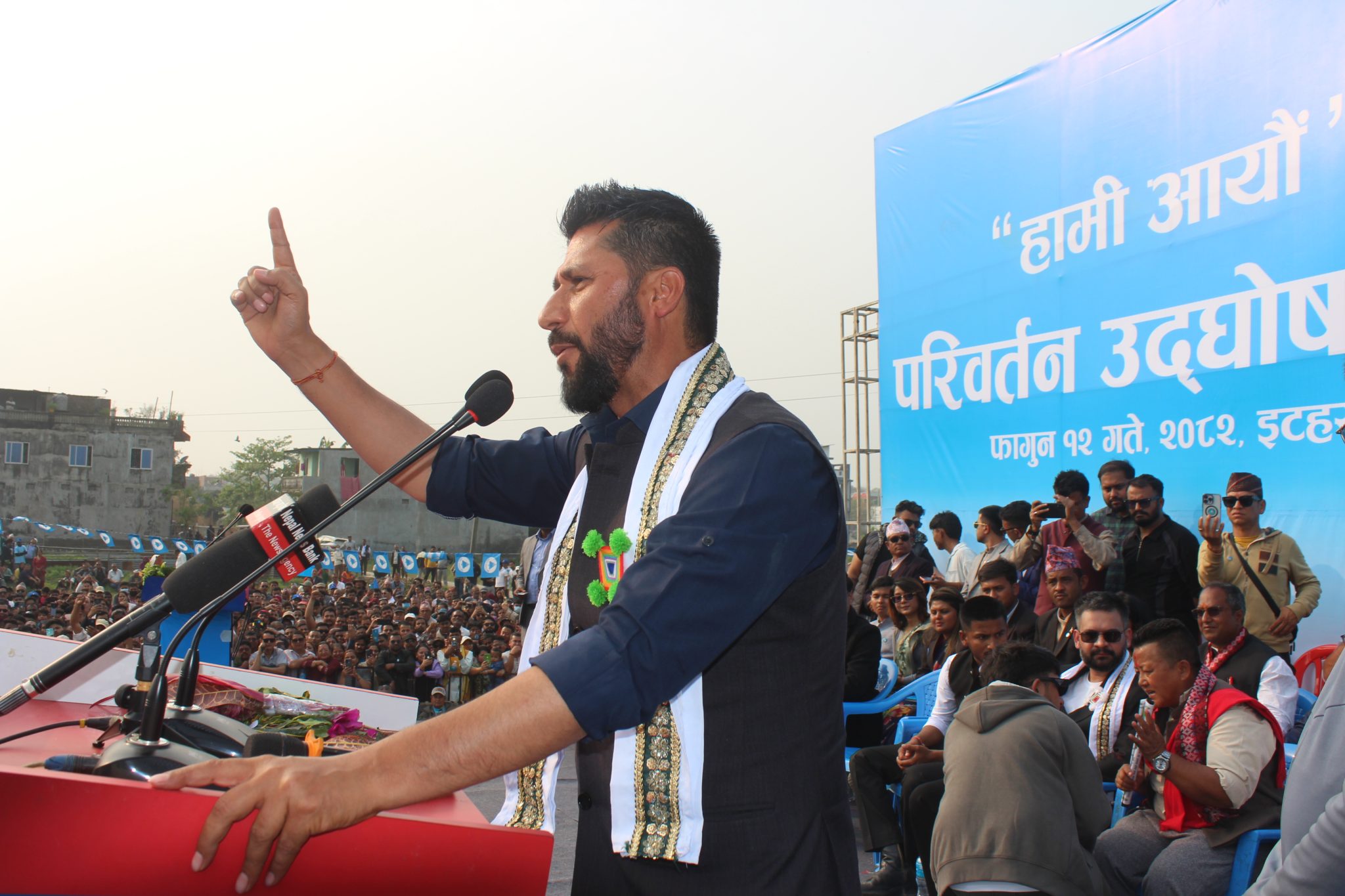 Addressing the Itahari rally, Lamichhane took a swipe at leaders who had spent two decades in Parliament, remarking that they had only just realised that a dozen or more laws must be amended to facilitate road construction.