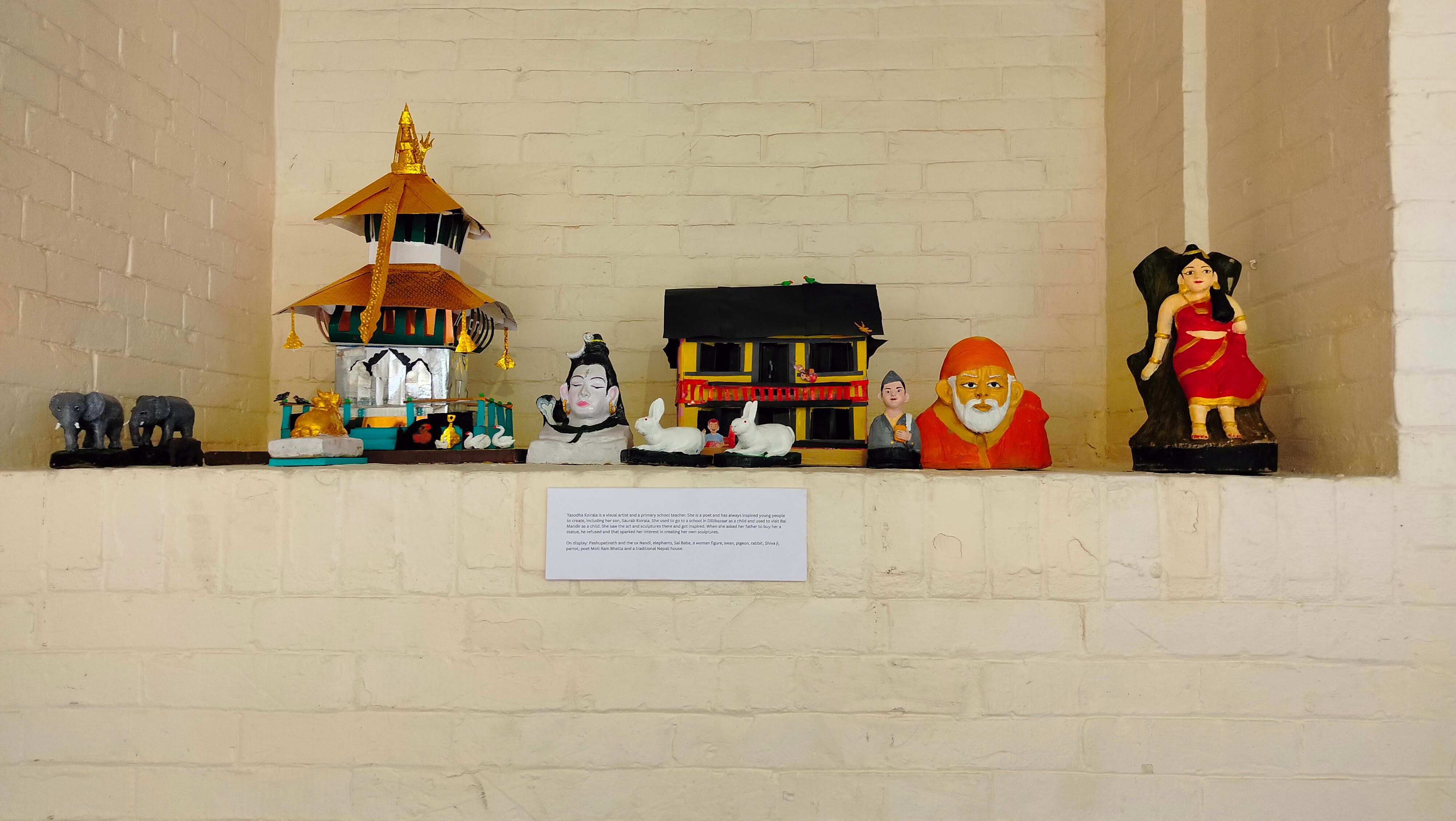 Moreover, he credits his mother, Yashoda Koirala, for inspiring his artistic journey. “My mother used to build houses and temples from discarded cardboard boxes and clay. When I think about how I got into art without any formal education, it all goes back to her,” says Koirala. “She used to be so happy immersed in her creations, and I wanted to feel that same joy, which unconsciously guided me toward art.”