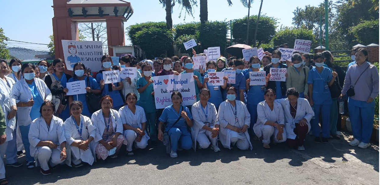 Currently, nurses at Manipal, Gandaki, and Birat Medical Colleges, among others, are protesting, demanding that their pay match the government’s standard.
