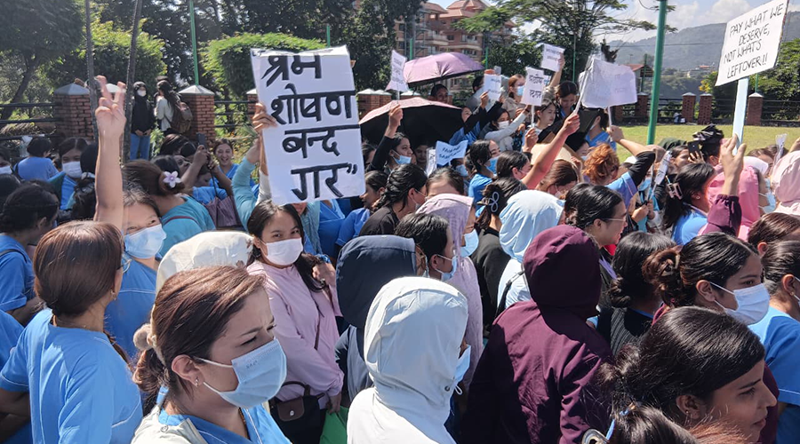 Nikita Kunwar (name changed) from Palpa has given up nursing altogether and now stays home. Having worked at various private hospitals, she went into depression because of workplace exploitation.