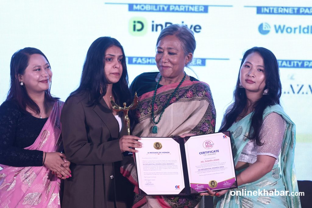 At a special ceremony held Monday evening at The Plaza in Lalitpur, Acting Chief Justice Sapana Pradhan Malla unveiled the list and presented awards to the selected women. She expressed her happiness over Onlinekhabar’s initiative to honour women and suggested continuing the campaign.