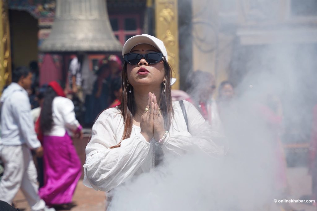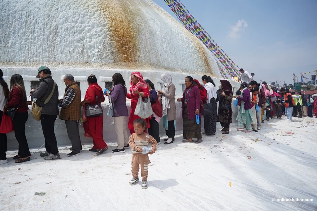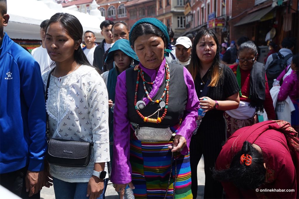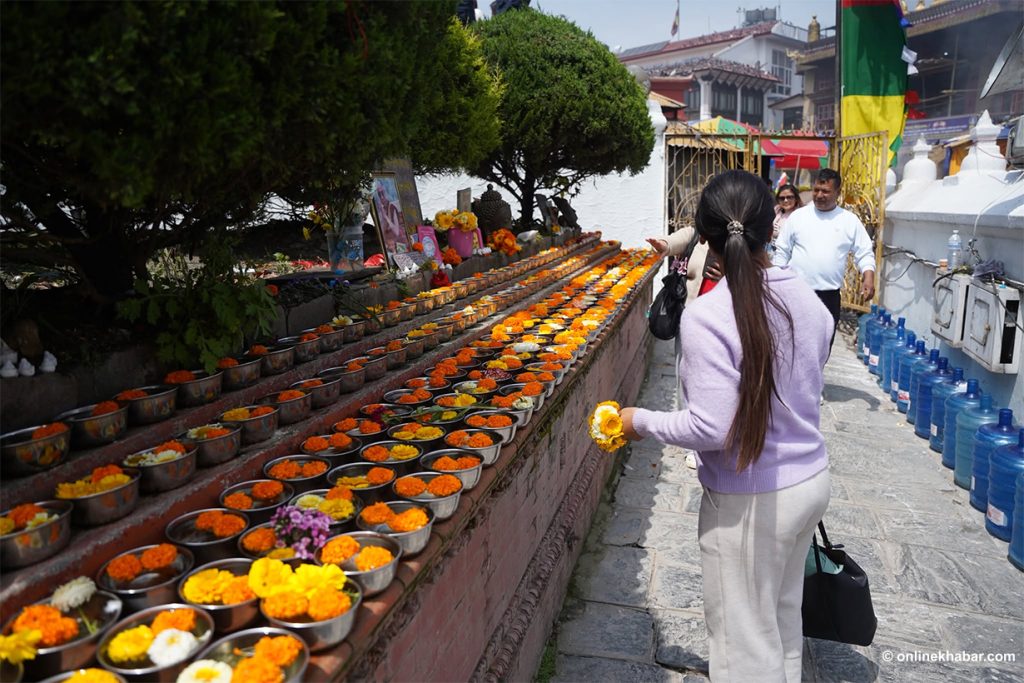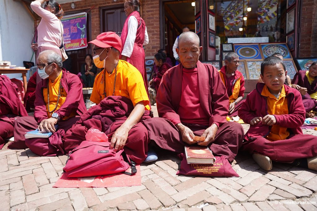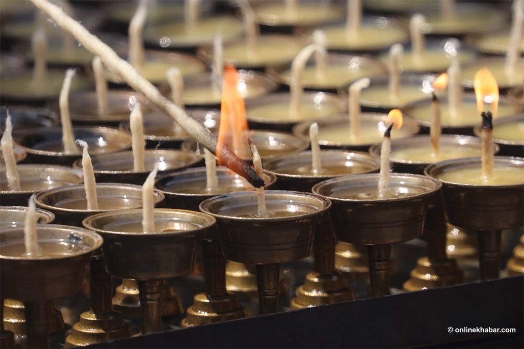 On Chaitra Shukla Chaturdashi, members of the Tamang community perform special prayers led by Lama gurus, wishing for peace for the departed souls. They also light butter lamps at the Bouddha Stupa as part of the ritual.