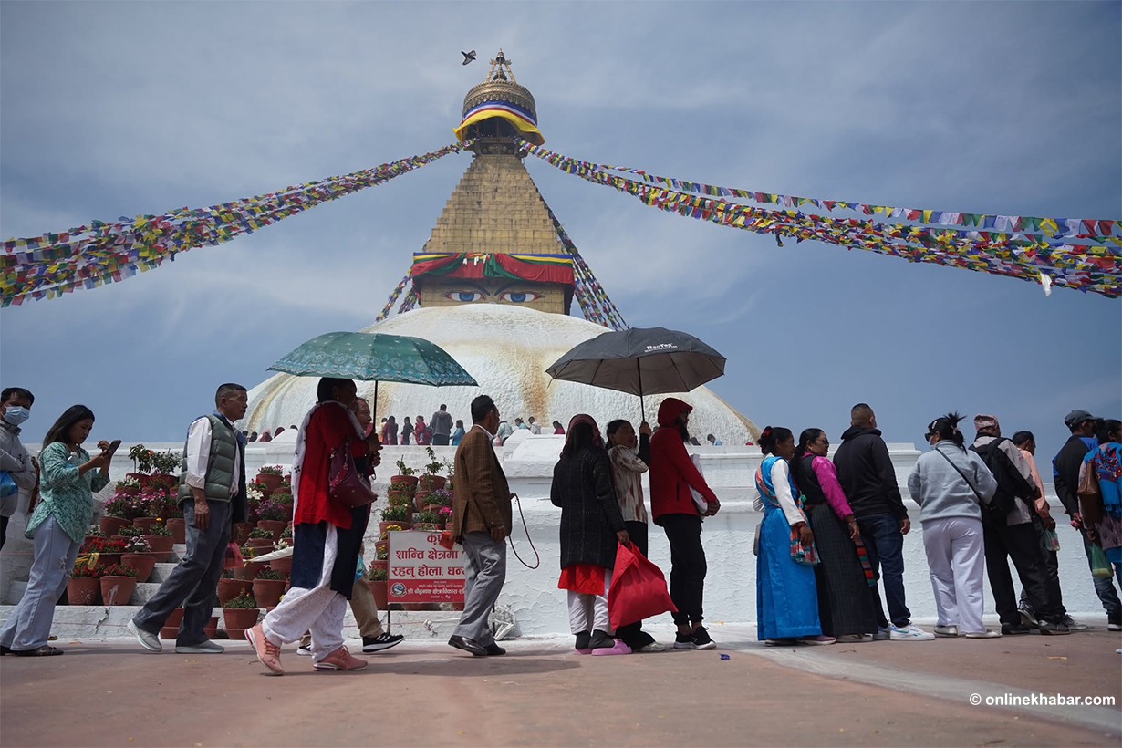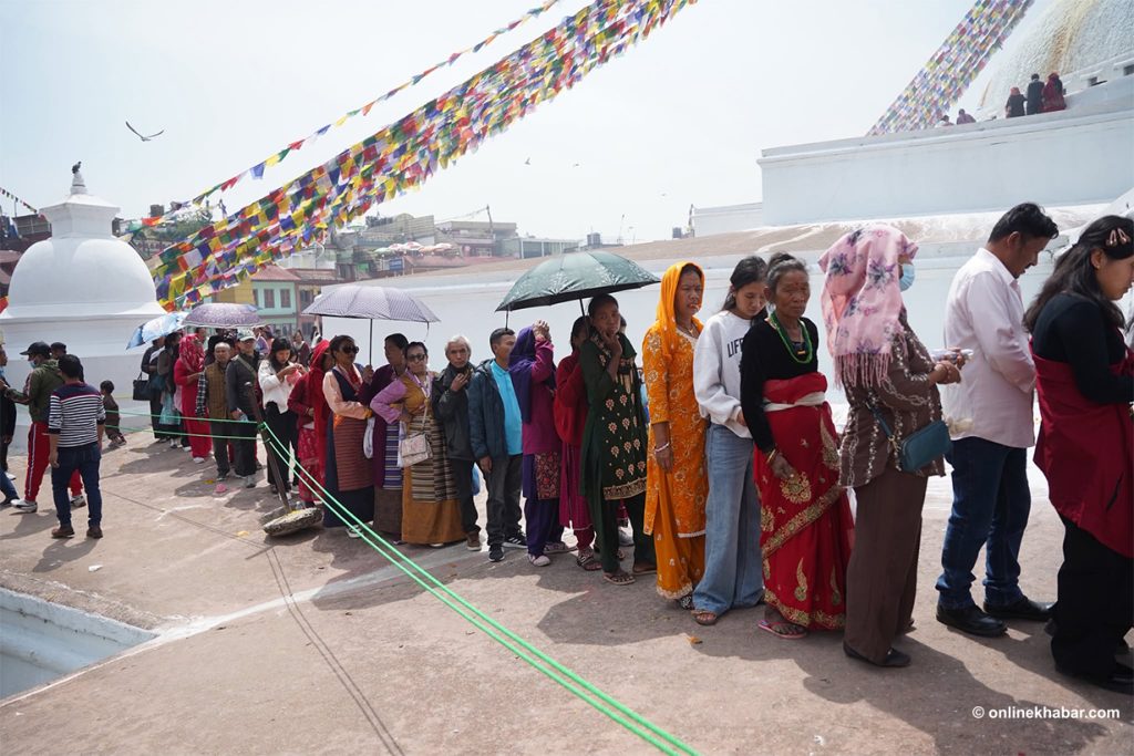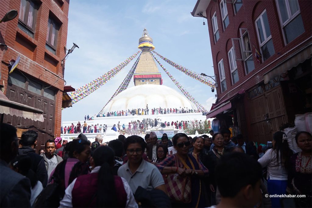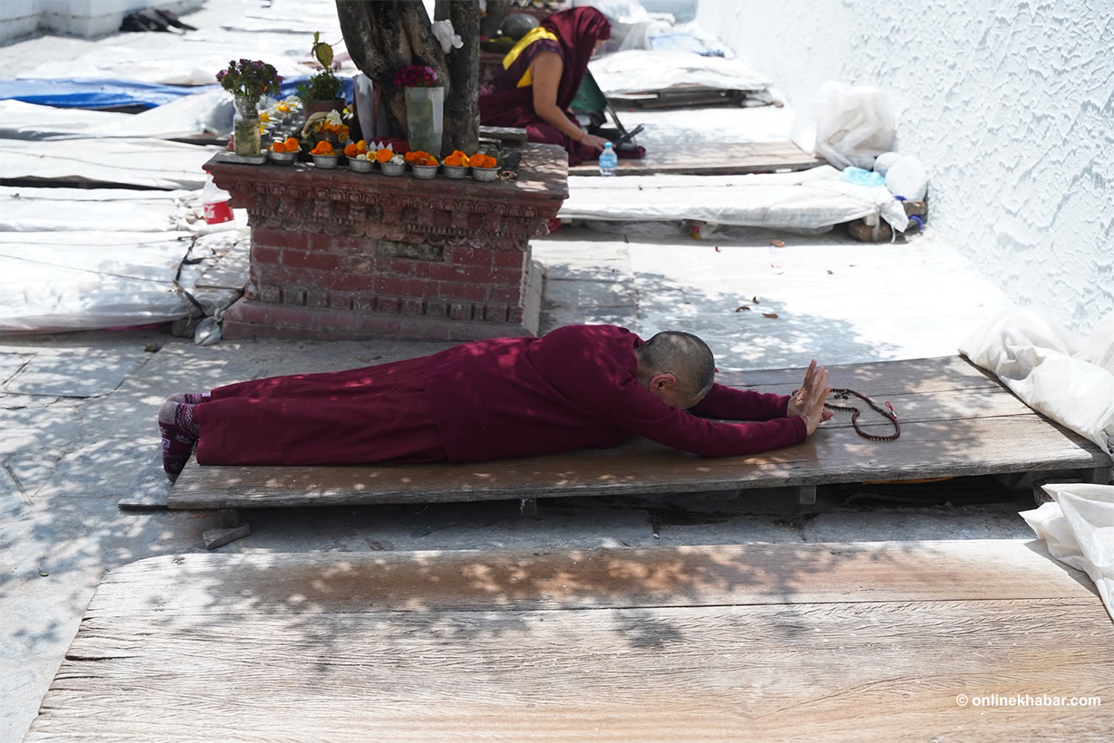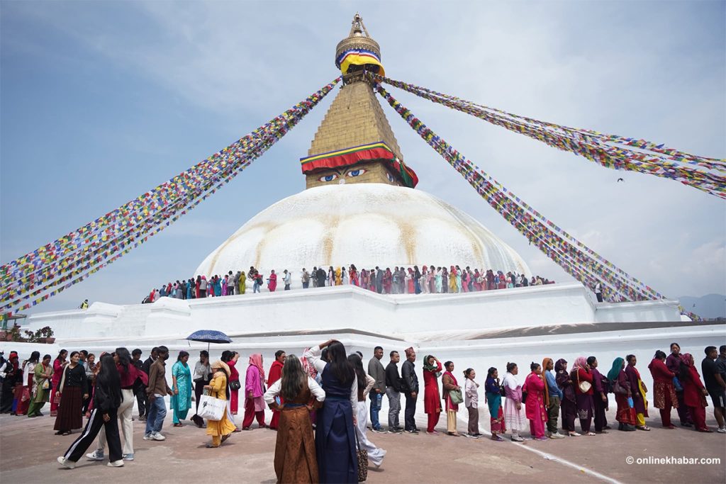 On Chaitra Shukla Chaturdashi, members of the Tamang community perform special prayers led by Lama gurus, wishing for peace for the departed souls. They also light butter lamps at the Bouddha Stupa as part of the ritual.