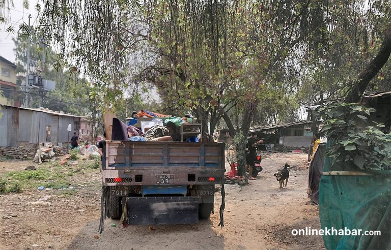 Landless squatters living along the banks of the Bagmati River in Thapathali, Kathmandu, have begun vacating their homes. After the government prepared to demolish the settlement’s structures, residents started moving their belongings on Friday morning. However, some youths have gathered and are staging protests against the government.