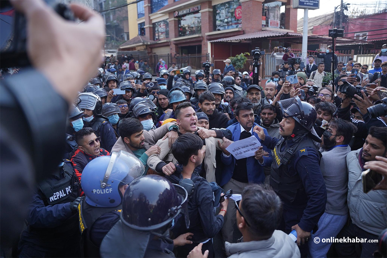 Youth activists, including Miraj Dhungana, staged a protest at Maitighar demanding the formation of an all-party government. Ravi Kiran Hamal, Nicholas Bhusal, and others also took part in the demonstration.